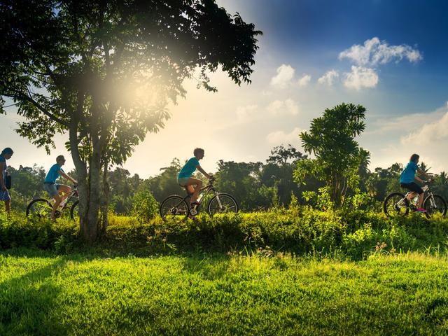 Take a guided ride through lush green paddy fields and see electric blue kingfishers, brilliant white egrets, big buffalo, village life, tea plantations, rice paddy fields, temples, smiles, views, spices, fresh fruit, meandering paths, and the true spirit of Sri Lanka. You can choose one of following to enjoy: