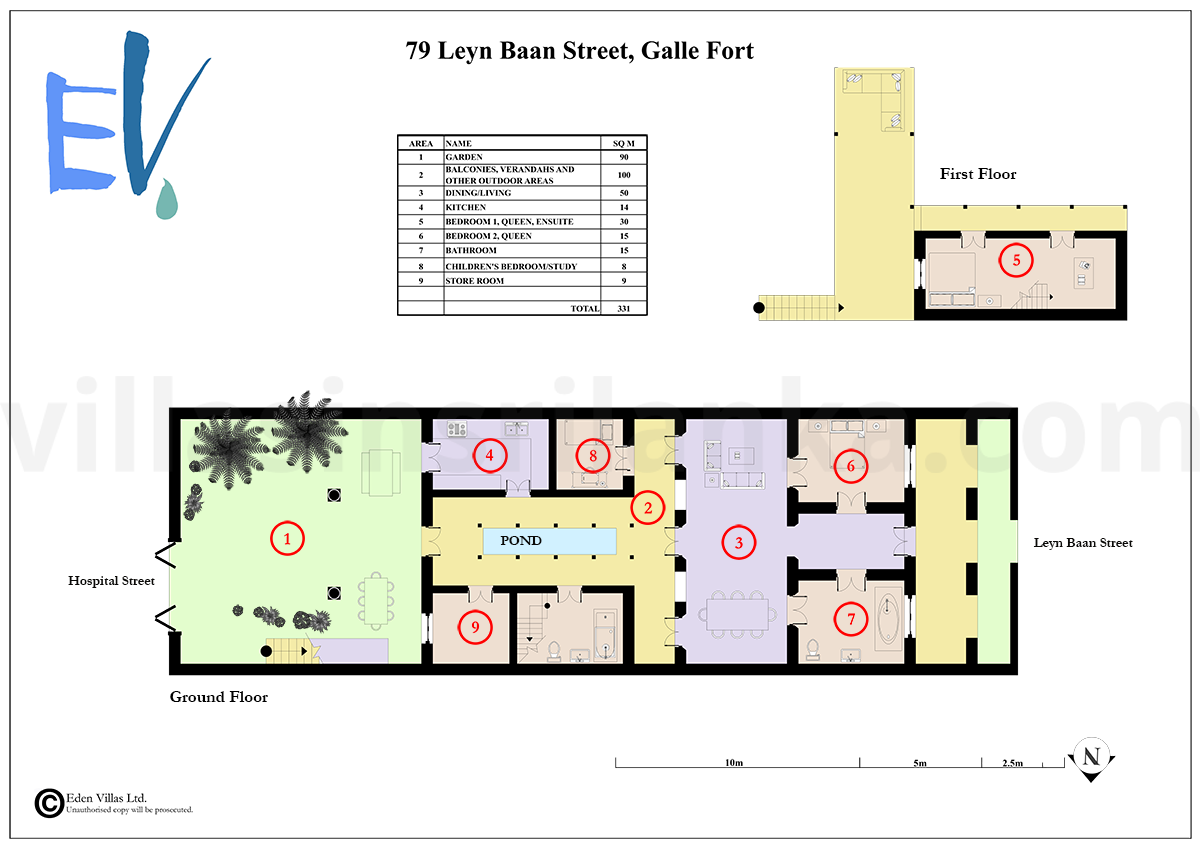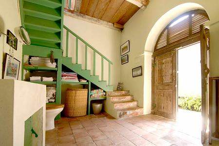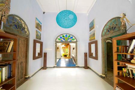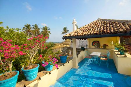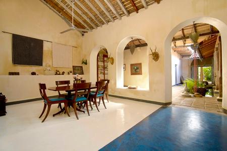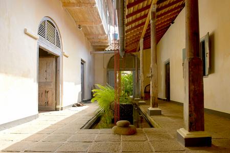 There are two entrances; the garden entrance leads to the Galle Fort ramparts, the lighthouse and the beach below while the front entrance opens into the narrow lanes of the Fort. The roof terrace looks out over the lighthouse to the Indian Ocean beyond. The house surrounds a cool pond centred in the courtyard and is laden with original 19th century architectural features.