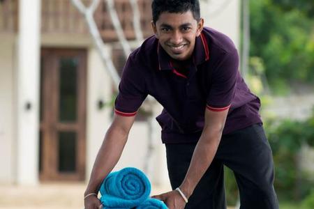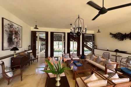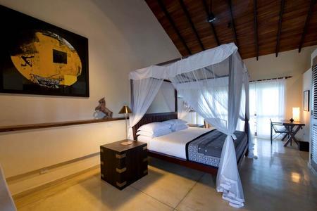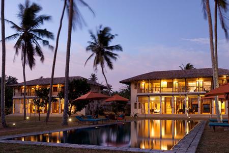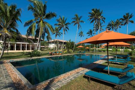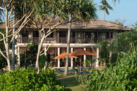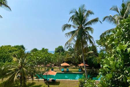 This villa has 8 double ensuite air con bedrooms divided equally between two luxury south facing villas side by side; over 2 acres of tropical garden; two swimming pools; a full compliment of staff; peacocks in the garden; monkeys in the trees; one of THE most beautiful bays close by. About 45min from Galle Fort. Each villa can be rented individually or the entire property.
