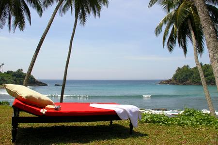 four-bedroom villa set within two acres of tropical gardens, perched above Hiriketiya Bay on Sri Lanka’s south coast.
