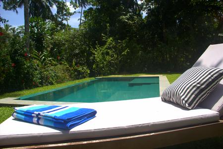 The two separate villas are within the same gardens. The three bedroom villa looks southerly over the beach and ocean and the two bedroom villa has garden views. Both have pools.