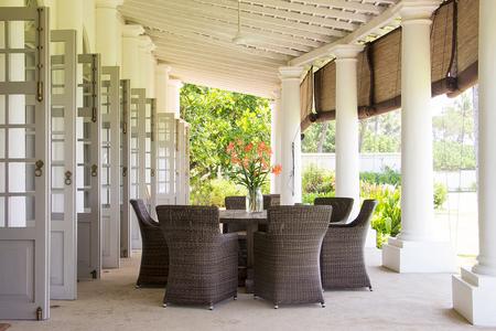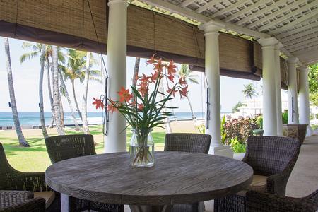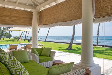 The lawn is large and manicured with dancing palm trees that bend this and lean creating a magical romantic setting as the evening sun slides into the ocean. The tiled pool is large enough for strenuous activity or for floating around and lunch can be taken in the pool side pavilion or on the main villa verandah. There is an indoor door air con dining room to escape the humidity if it is preferred with an adding kitchen to create a dinner party feeling every evening.