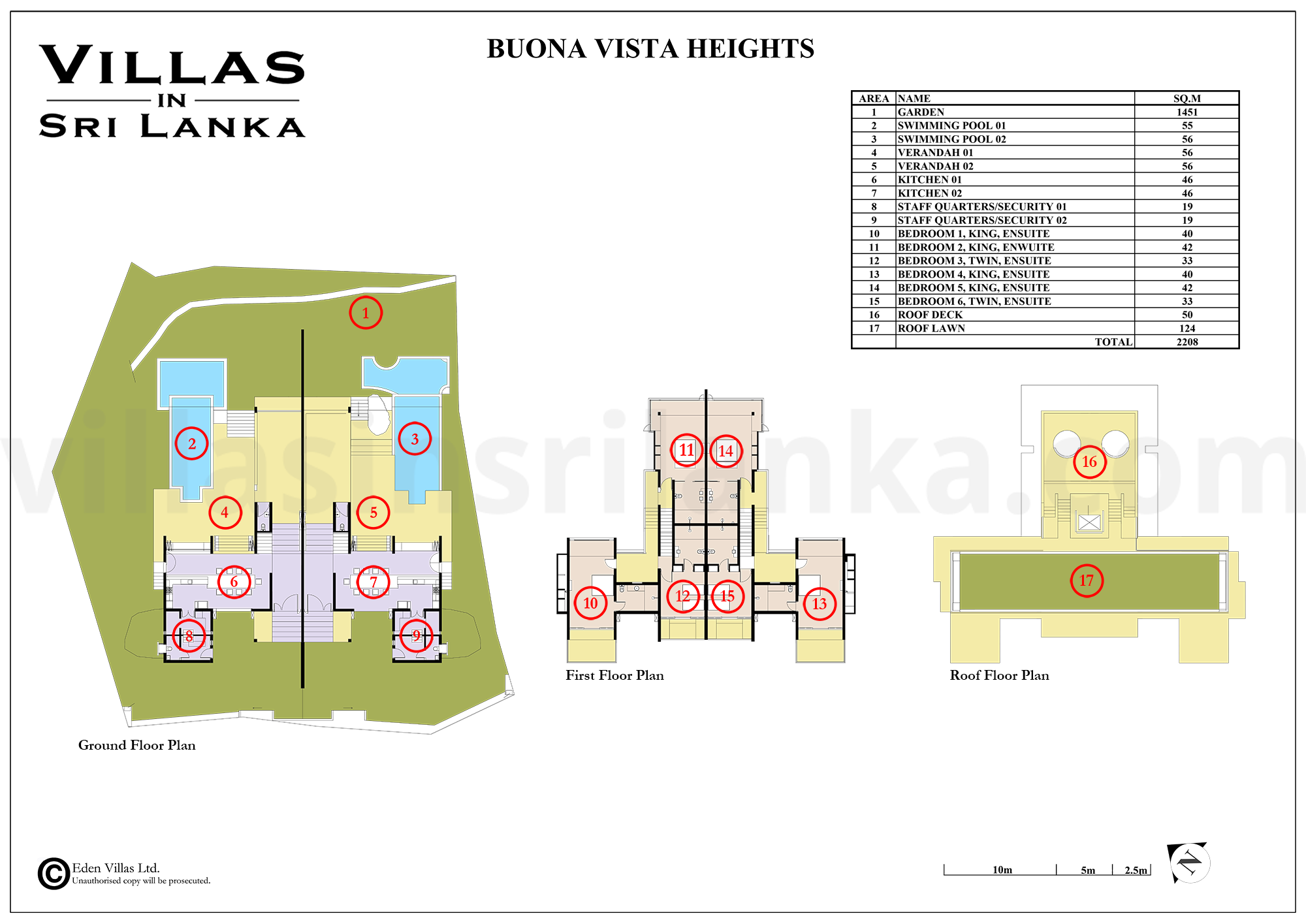 - 6 bedrooms suites