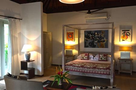 Accommodation comprises four stylish suites, each housed in their own sizeable chalet with individual terraces and gardens. All the suites are air-conditioned and en-suite with twin vanities. There is also a spacious fifth suite that has been designed with young families in mind hosting a king size double and 2 bunk beds (sleeping 4).