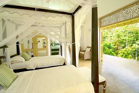 The villa design is “inside/outside”, making it feel wonderfully spacious; and being on top of the hill, attracts a welcome breeze. It has big airy, high-ceilinged bedrooms, with one queen and one king size double and a twin. And sometimes in the evening, as the sun goes down, the soothing chants of the monks from the Buddhist temple nearby, just catch the breeze and envelope you in a serene sense of calm. Simply paradise…