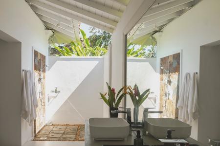 As soon as you walk along the tropical garden path and through the front door you can soak in the generous surroundings taking your first glimpse of the beautiful turquoise sea. The villa overlooks a reef protected lagoon that glistens in the sun light you are immediately put at ease.