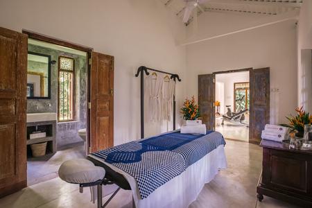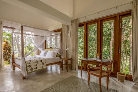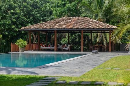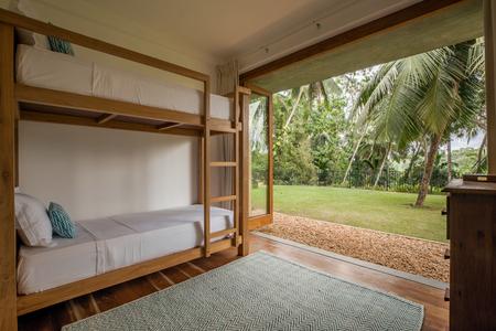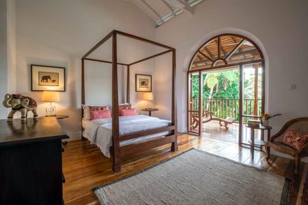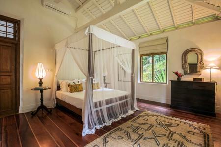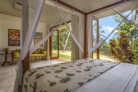 Perched on a high hill with south westerly views down to the ‘rice paddy cultivated’ valley floor, Lassana Kanda is extremely private. The main house has 4 bedrooms (3 king & 1 double) upstairs, all ensuite and air con. Two of the doubles lead out to a balcony that overlooks the pool and distant tropical canopy. Downstairs there is an open plan sitting and dining area; fully equipped kitchens and an air conditioned study / library as well as guest bathroom.