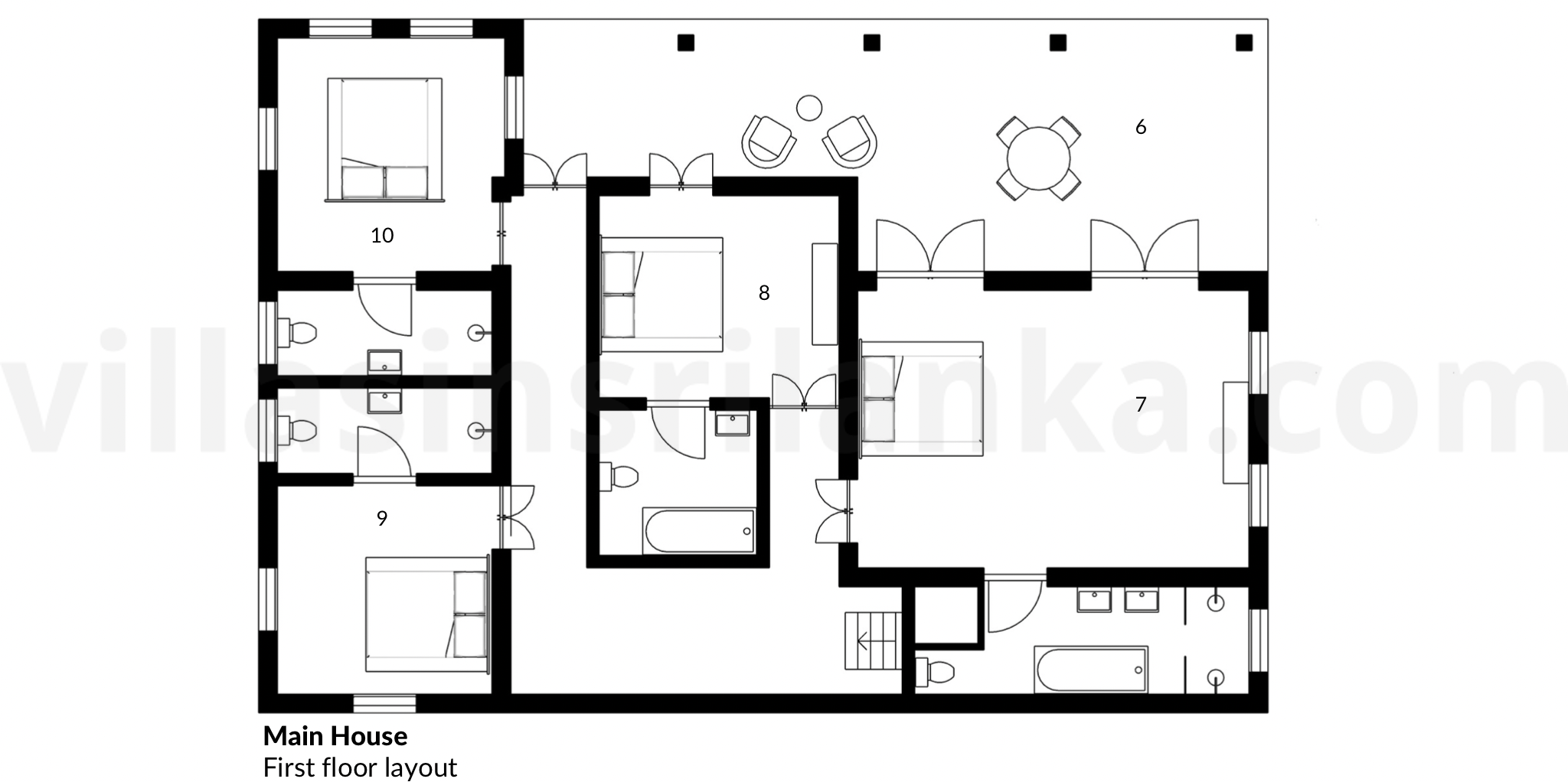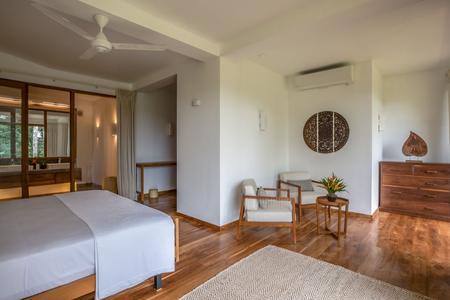 Perched on a high hill with south westerly views down to the ‘rice paddy cultivated’ valley floor, Lassana Kanda is extremely private. The main house has 4 bedrooms (3 king & 1 double) upstairs, all ensuite and air con. Two of the doubles lead out to a balcony that overlooks the pool and distant tropical canopy. Downstairs there is an open plan sitting and dining area; fully equipped kitchens and an air conditioned study / library as well as guest bathroom.