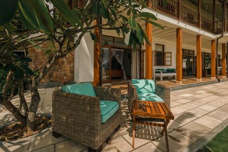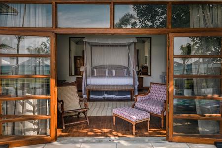 The heart of the villa is the open-plan living and dining space, designed for relaxed tropical living. A stylish bar anchors one end of the room, perfect for evening cocktails, while the indoor dining table opens onto the breezy veranda for al fresco meals. With the beach just steps away and panoramic views of the sea from nearly every corner, the setting invites you to slow down & savour the moment.