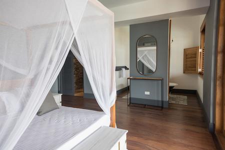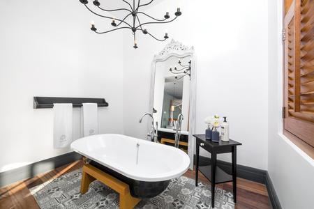 Sharing the 17m pool with the adjoining villa there are 4 well appointed bedrooms with one on the ground floor that has private and easy access to the gardens and pool. This bedroom with ensuite bathroom has a king size bed. Of the 3 bedrooms upstairs two are king and one has twin queen singles as well as 2 single pull out beds for up to 2 children. The bathrooms have lovely free standing baths, over sized rainforest showers, toiletries and bathrobes for adults and children. These upstairs bedrooms all have access to the full length balcony with seating that offers up spectacular views out to sea making it as perfect for reading during the day or to watch the amazing sunsets.