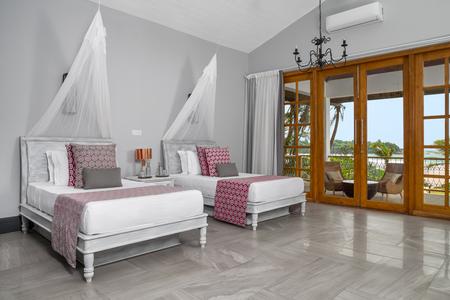 four-bedroom villa set within two acres of tropical gardens, perched above Hiriketiya Bay on Sri Lanka’s south coast.