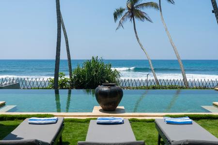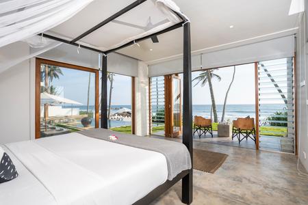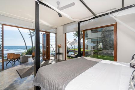 A recently completed contemporary beach house with 5 luxury suites. There are two spacious ground floor garden suites, two first floor suites with balconies and one large family suite on the ground floor. All the rooms come with lovely King size beds, an ensuite bathroom, A/C, ceiling fans, mosquitos nets and a safe. Enjoy lapping up the Indian ocean from the 15 metre infinity pool or stroll along the sandy shore to a number of great cafes and restaurants. The villa is in great proximity to Galle Fort, surf breaks, a fantastic yoga shala and many activities for all ages.