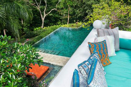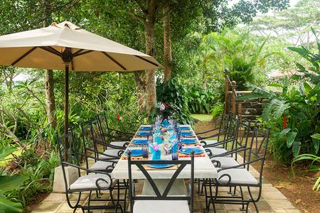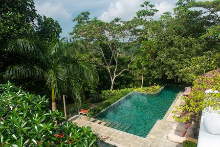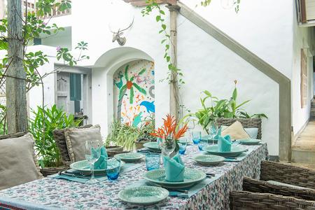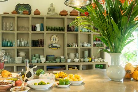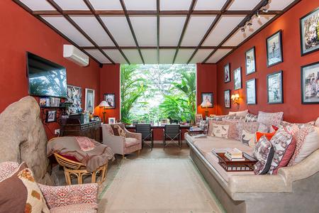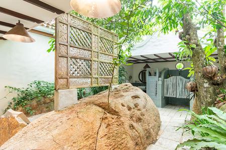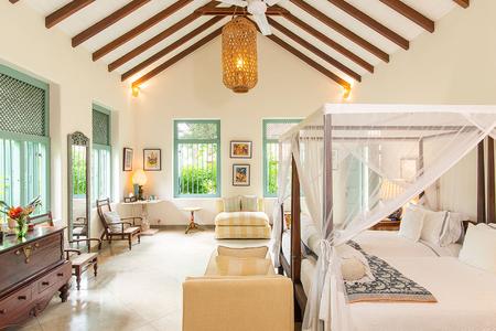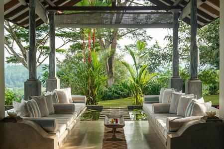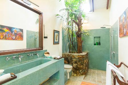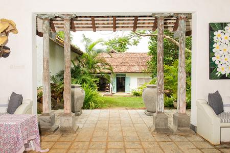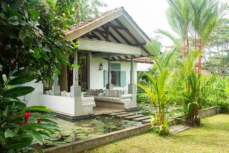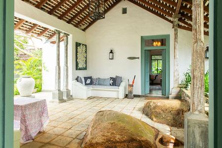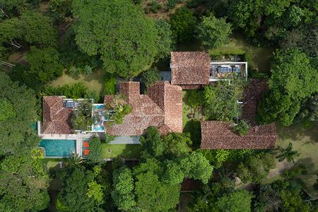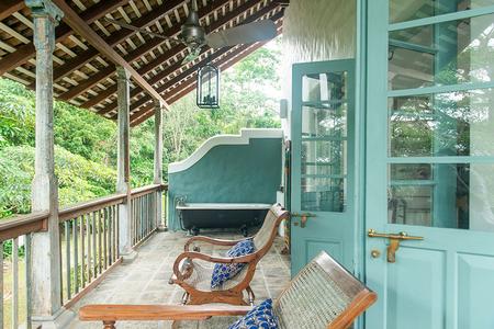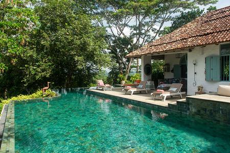 Climb the ancient track bordered on one side by a dry stone wall holding back mango and avocado trees as well as pineapple plants and by a carpet of perfectly tended tea on the other to the top of the hill, the largest in the area, and arrive at the smooth granite boulders that lead to this stunning house. A superb collaboration between the English owners and an acclaimed Sri Lankan architect has evolved to create this truly spectacular tropical paradise.