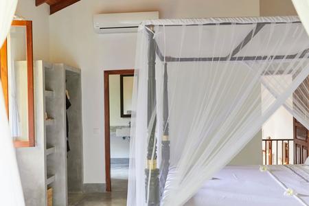 From the beautiful outdoor terrace, you walk into a stylish and elegant double height sitting room with a fully equipped kitchen to your right and downstairs loo to your left. Off this are the four bedrooms, all with A/C, overhead fans, 4 poster beds, safes, plentiful hanging space and en suite bathrooms with walk in showers. Two of the double bedrooms are on the first floor and have Juliette balconies overlooking the garden, the remaining two (a double and twin, which can be made into a double) are on the ground floor. There is an additional room with A/C also on the ground floor with a large daybed, suitable as a single room for kids or as a study.