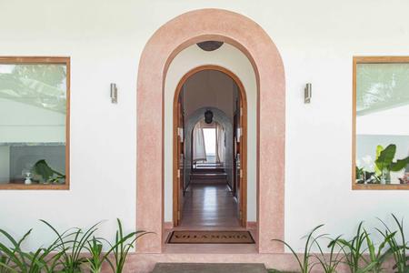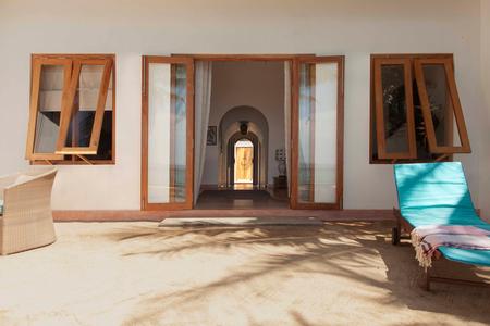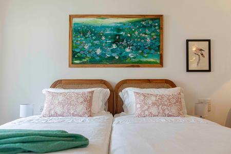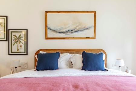 Enter the house though the arched door & immediately your gaze is channeled to the ocean glistening & dancing in the distance. This thoughtfully designed villa features two beautifully appointed bedrooms that face each other either side of the entrance hallway.