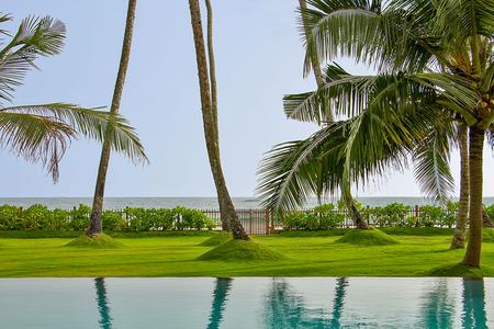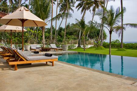 A stunning beach side villa with a 15m pool and soft grassy lawn leading to a spectacular beach suitable for seasonal bathing.